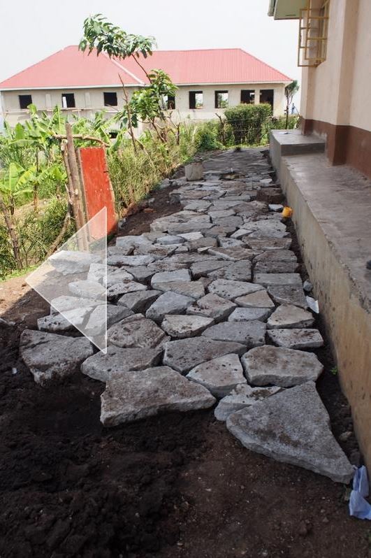 Der rote staubige Sand ist in Nyamirima überall zu finden. Um die Sauberkeit in den beiden Boardinghäusern zu gewährleisten, wurde der Boden rund um die Internatshäuser mit Steinplatten einfasst.