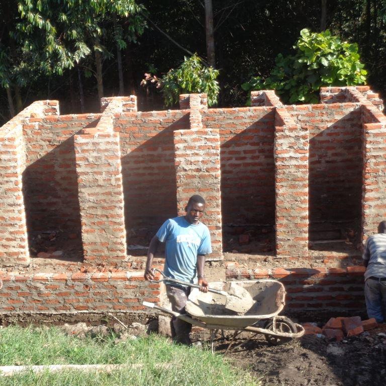Damit unsere kleinen Kindergartenkinder nicht den ganzen Hügel zur nächsten Latrine hochlaufen müssen, wurden insgesamt acht Kabinen in unmittelbarer Nähe zum Nursery Gebäudes errichtet.